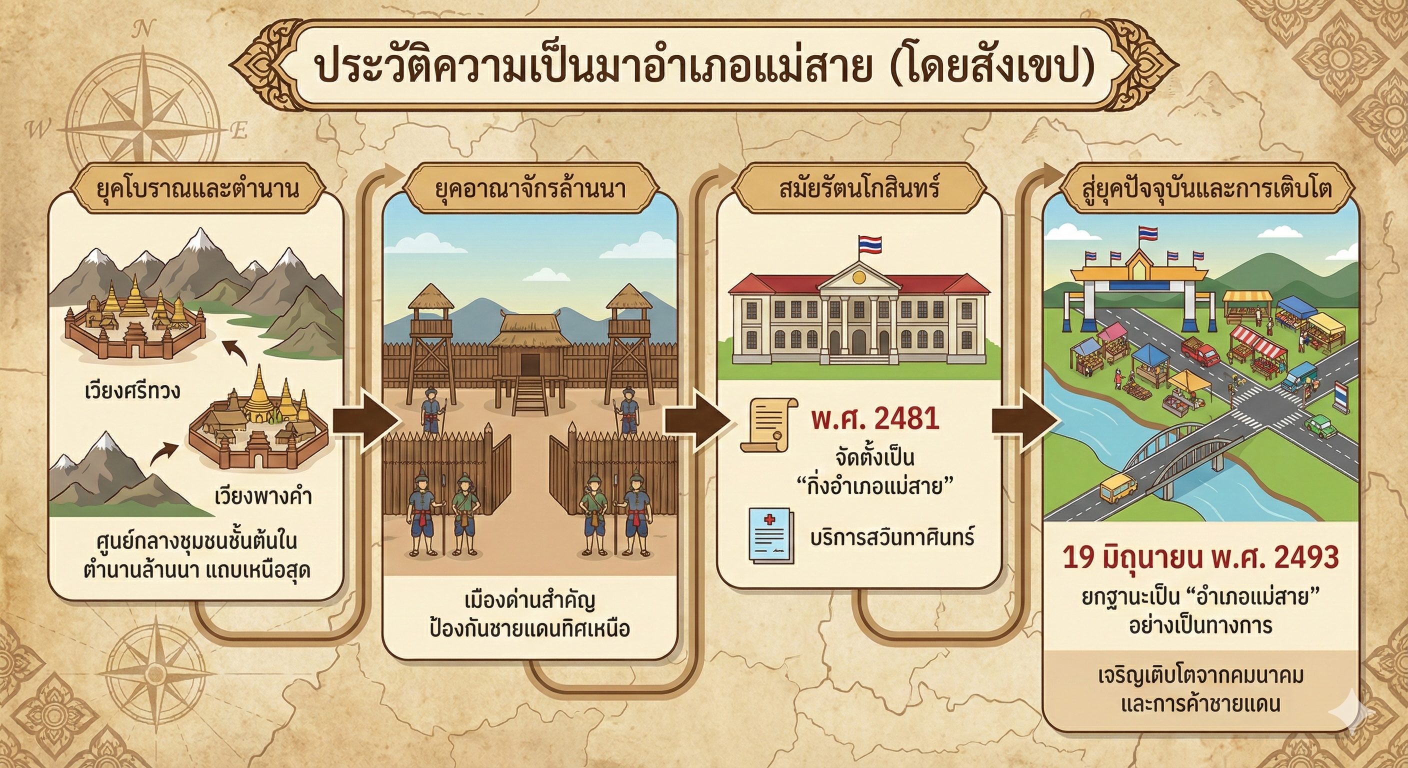 แม่สายไม่เพียงเป็นจุดผ่านแดน แต่เป็น “พื้นที่ของเรื่องราว” ที่สะท้อนการเดินทางของผู้คนหลายเชื้อชาติและวัฒนธรรมตลอดหลายศตวรรษ จึงเป็นอำเภอที่มีเอกลักษณ์โดดเด่นและมีความสำคัญต่อการพัฒนาภาคเหนือในยุคปัจจุบัน